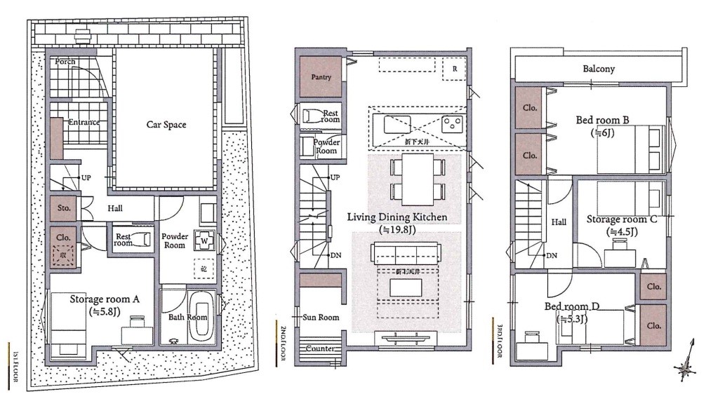 | 間取り | 2LDK+2S | 建物構造 | 木造 3階建 |
