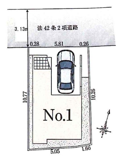 | 駐車場 | 1台 | 道路の幅員 | 4.0m・4.0m |