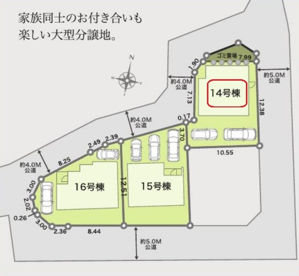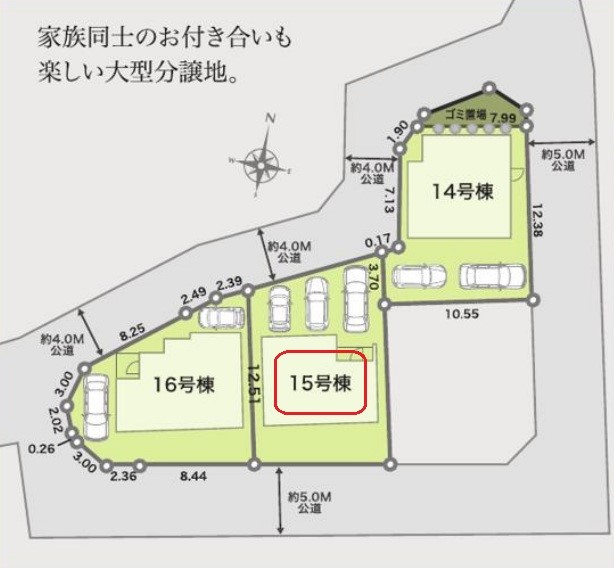 | 駐車場 | 1台 | 道路の幅員 | 5.0m・5.0m |