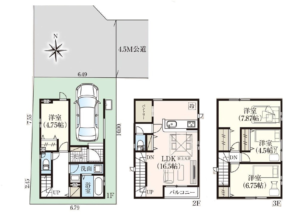 | 駐車場 | - | 道路の幅員 | 4.5m・4.5m |