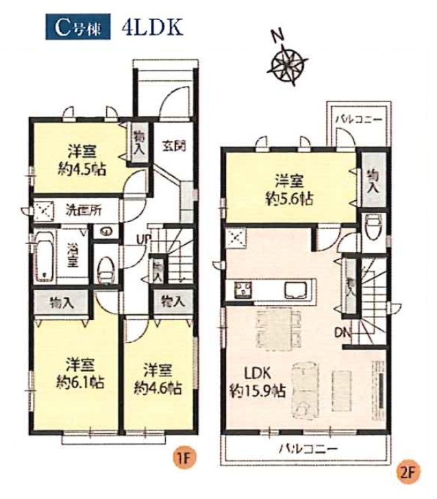 - 間取り 4LDK 価格 5690万円 建物面積 88.8m2 土地面積 96.36m2 -
