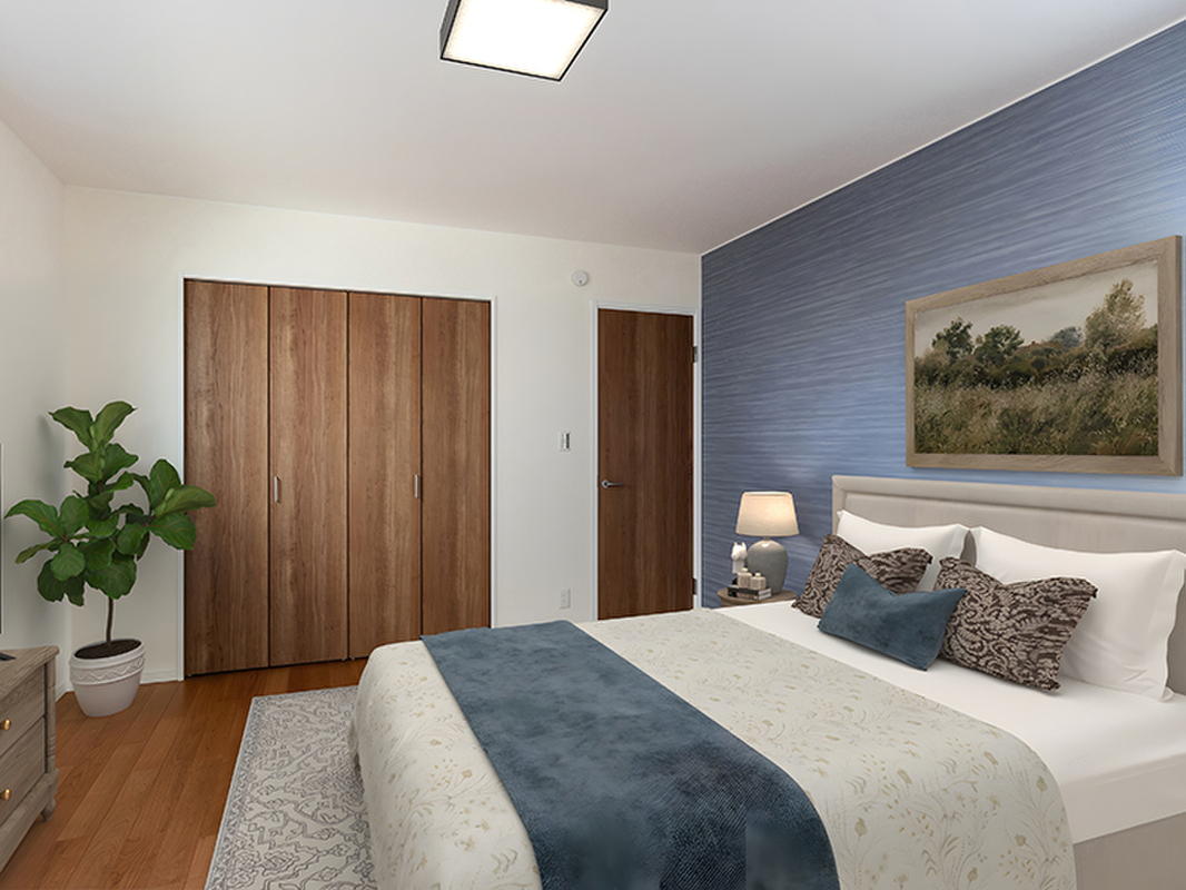 7.54帖の寝室には大型WICがあり、たっぷり収納可能。2面の...
