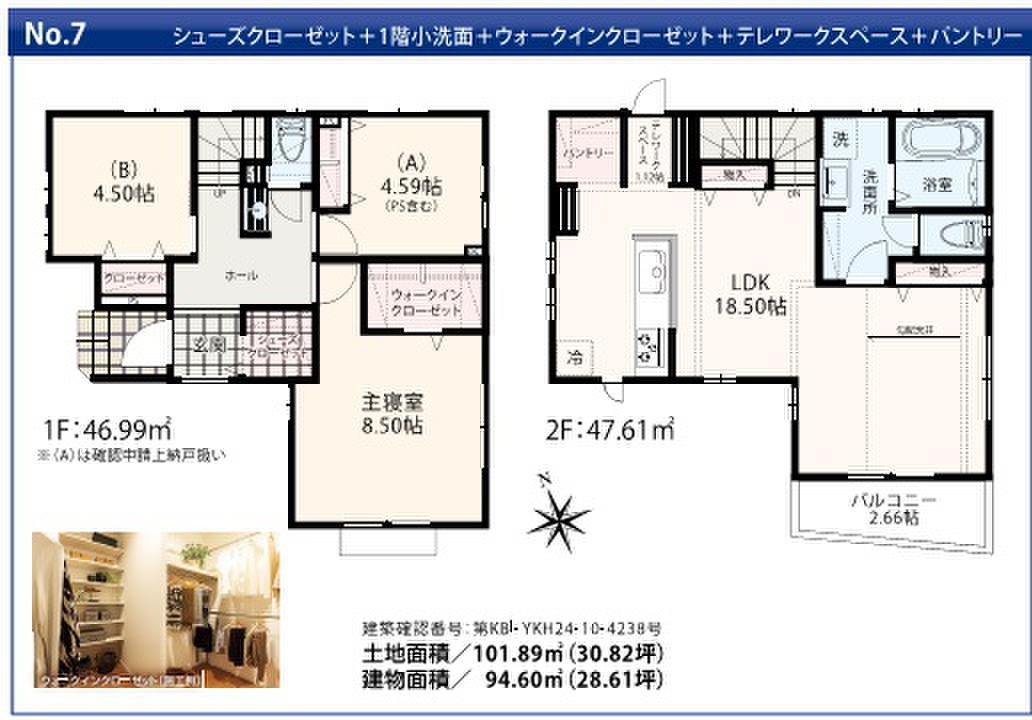 | 建物面積 | 2号棟:96.96m2(29.33坪) | 土地面積 | 2号棟:149.97m2(45.36坪) |