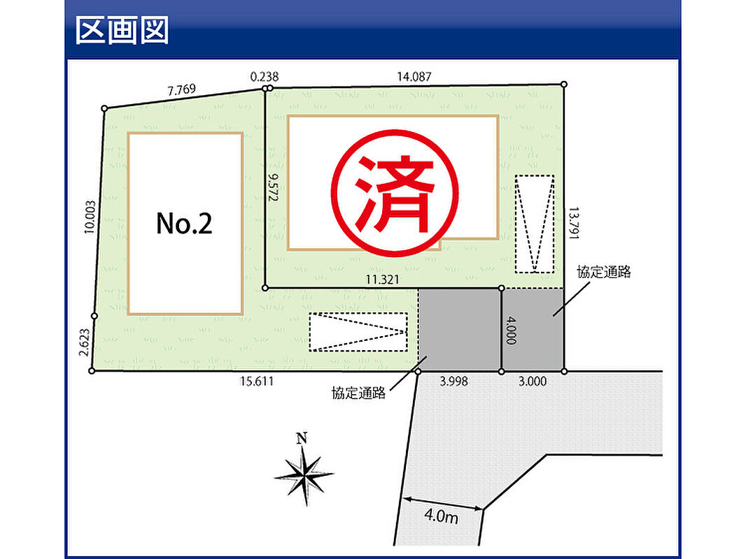 | 駐車場 | 1台 | 道路の幅員 | 南側4.0m |