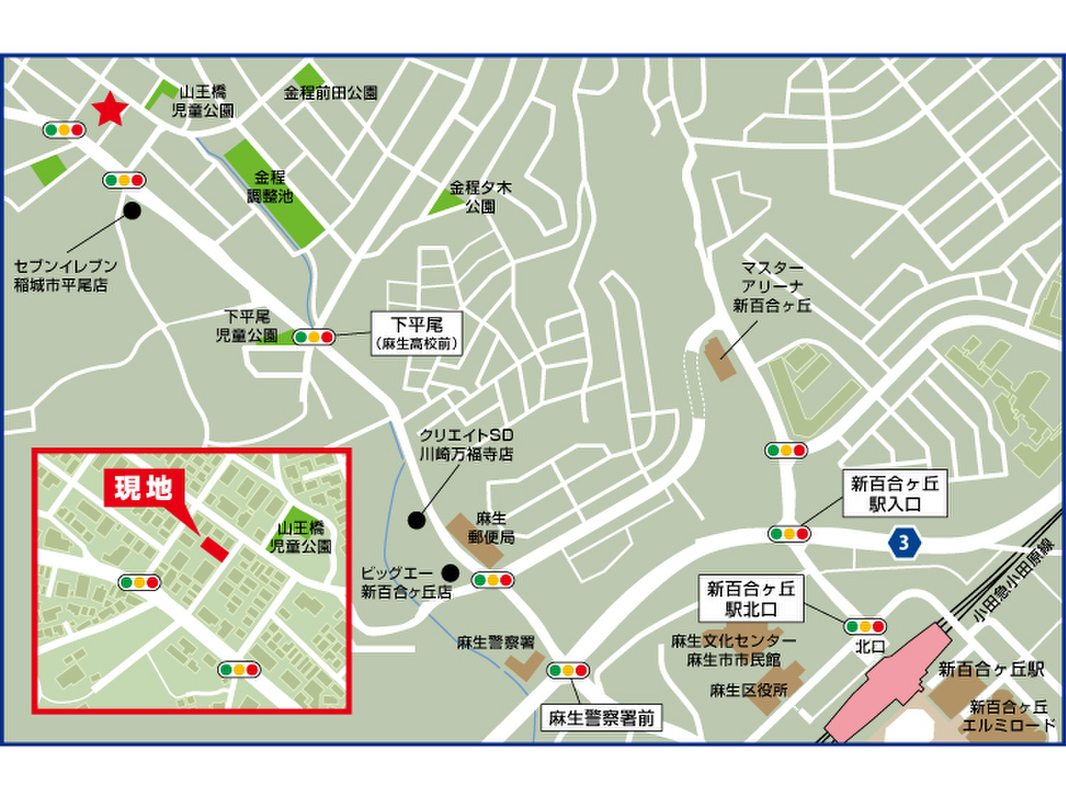 小田急小田原線「新百合ヶ丘」駅 徒歩20分 小田急多摩線「新百合ヶ丘」駅 徒歩20分 |