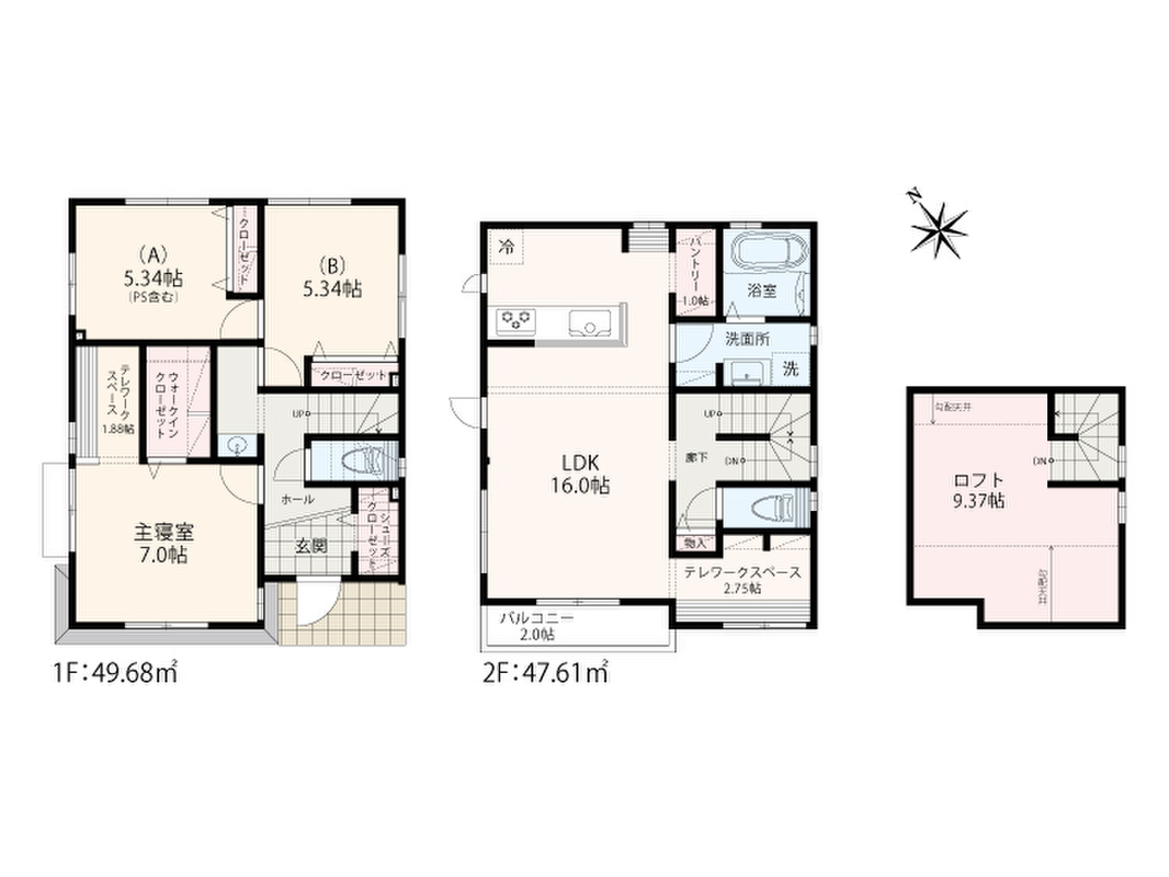 2号棟 間取り 1LDK+2S+大型ロフト 価格 5380万円 建物面積 97.29m2 土地面積 117.20m2 -