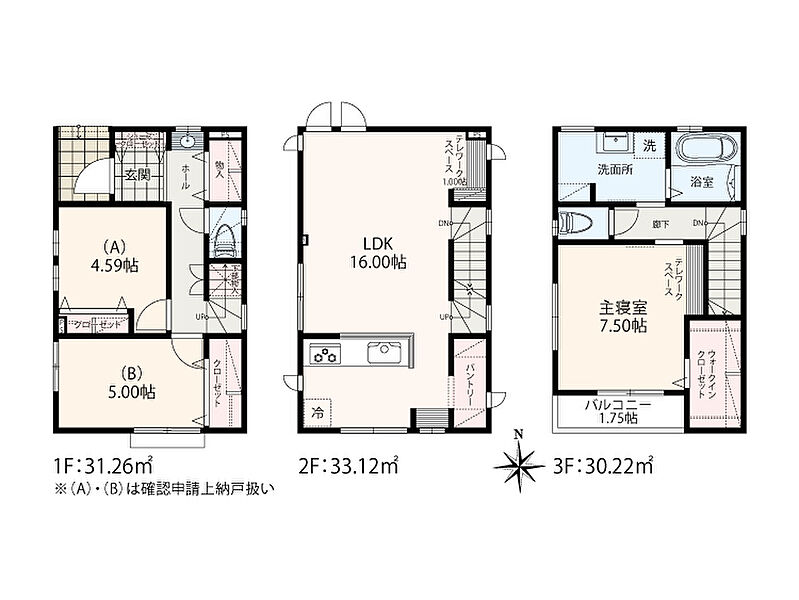 ブランピュール大和・桜ヶ丘全11棟2期5棟(7号棟) 間取り 1LDK+2S 価格 4080万円 建物面積 94.60m2 土地面積 73.92m2 -