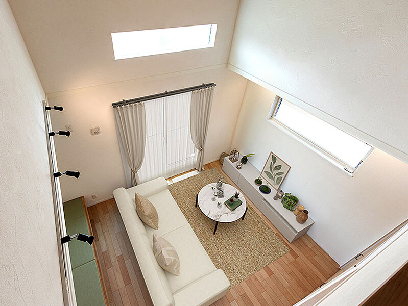 ◆約18帖超のリビングには吹抜けており、開放的で家族が自然に集まる工夫がなされています。
