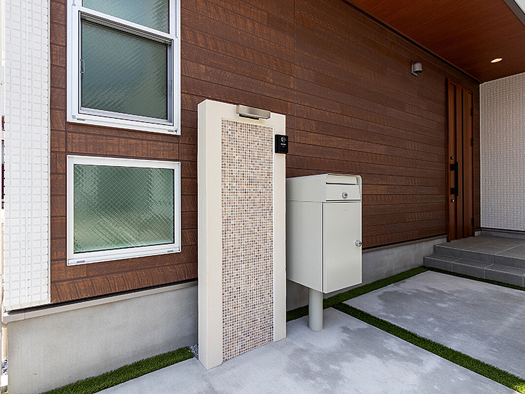 門袖のデザインもこだわりが。宅配ボックスを設置しているため、不...