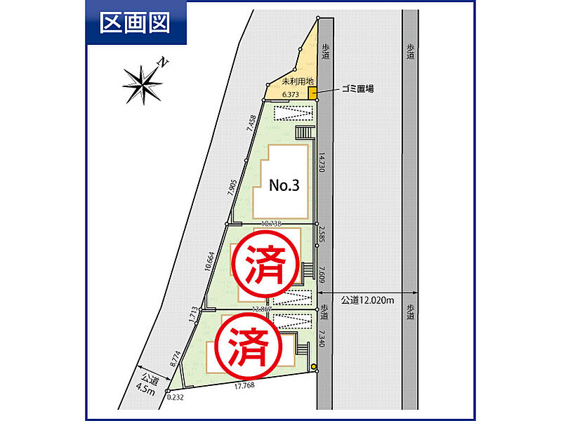 | 建物面積 | 3号棟:93.15m2 | 土地面積 | 3号棟:125.41m2 |