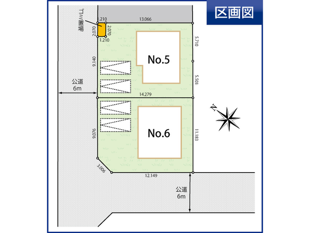 | 駐車場 | 2台(並列2台) | 道路の幅員 | 5・6号棟:北西側約6m公道 6号棟:南西側約6m公道 |