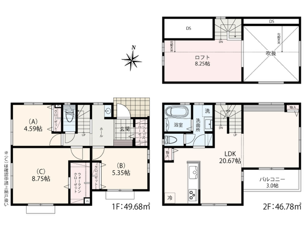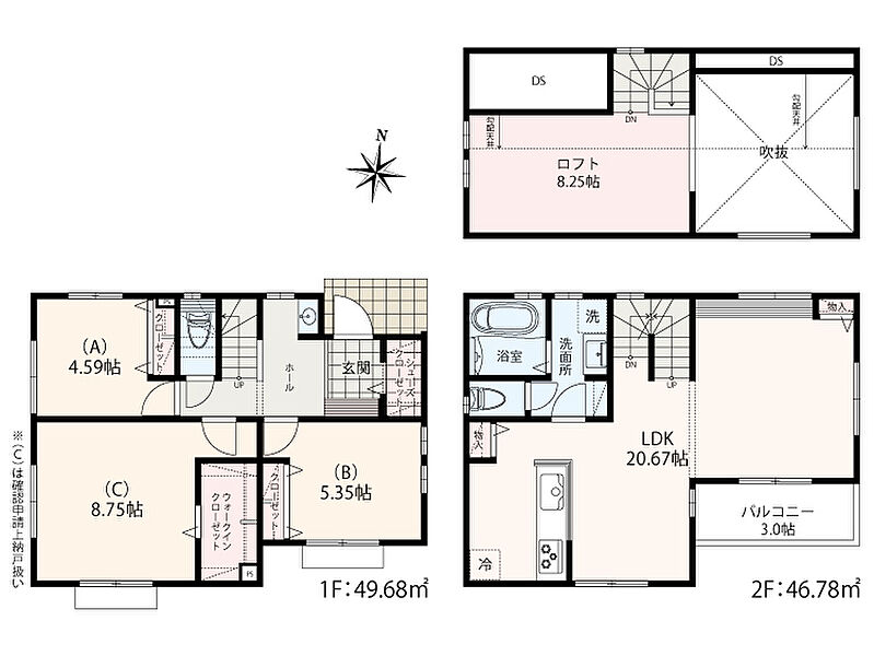 7号棟 間取り 2SLDK+WIC+SC+大型ロフト 価格 5680万円 建物面積 96.46m2 土地面積 125.20m2 -
