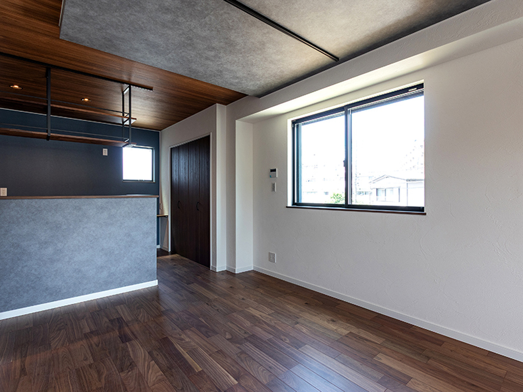 【インダストリアルアイテム】オリジナルデザインのブラックスチール装飾やレンガ調のタイル、明度を落としたアクセントクロスなどを採用。無骨なカッコよさを感じるアイテムをちりばめています。
