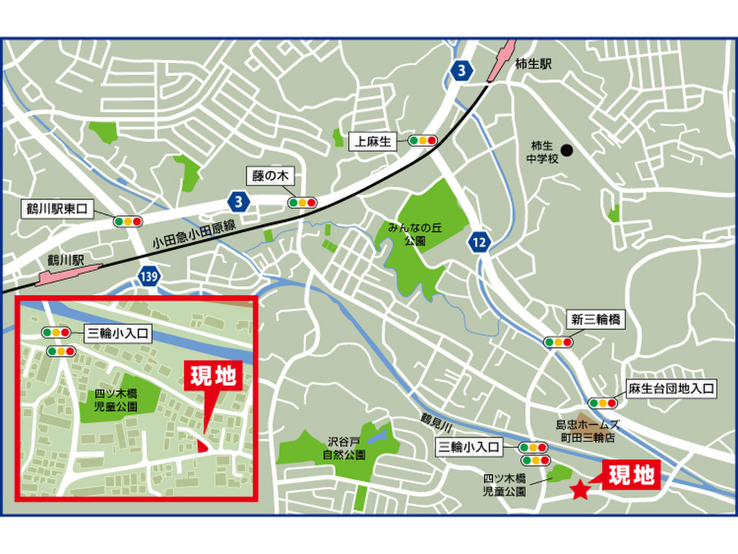 小田急小田原線「柿生」駅 バス13分「三輪」バス停 徒歩3分 小田急小田原線「鶴川」駅 バス17分「三輪」バス停 徒歩3分 |