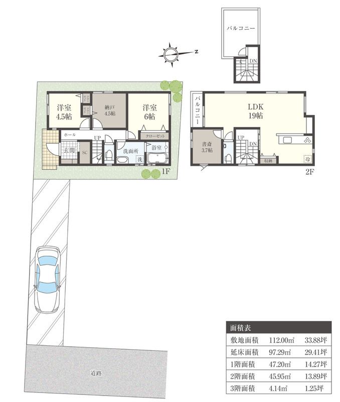 | 建物面積 | 97.29m2 | 土地面積 | 112.00m2 |