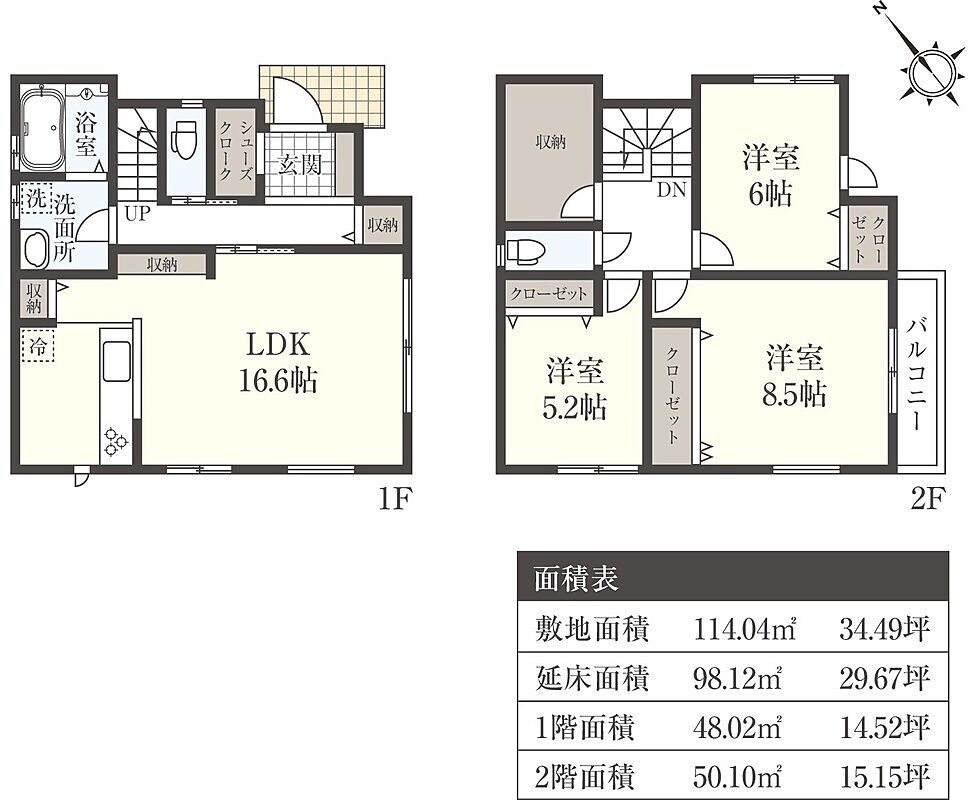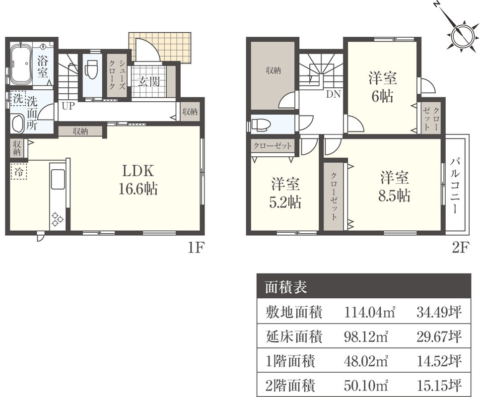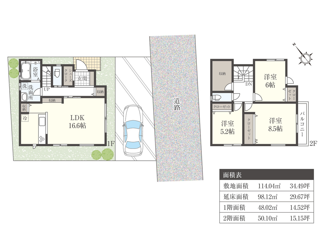 | 建物面積 | 98.12m2 | 土地面積 | 114.04m2(1区画) |