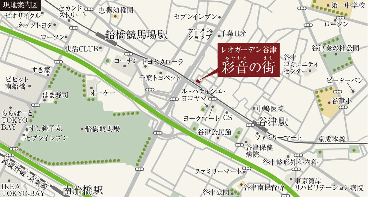 京成本線「谷津」駅 徒歩6分 JR総武本線「津田沼」駅 徒歩24分 京成本線「船橋競馬場」駅 徒歩8分 |