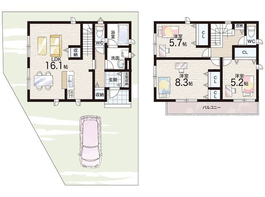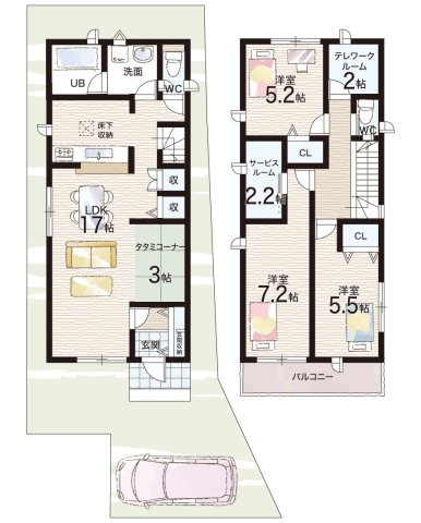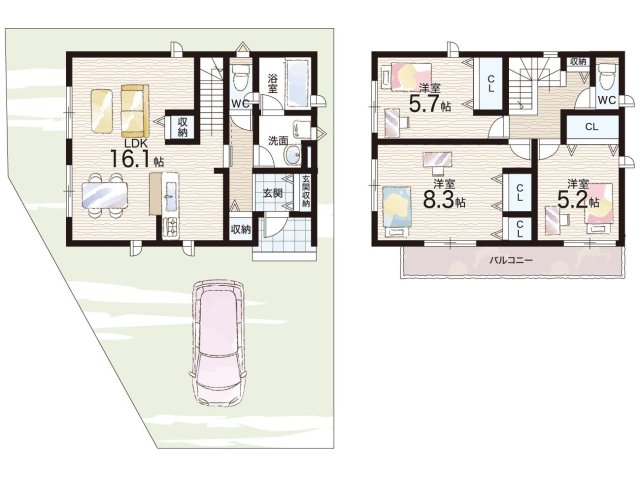 - ※完成予想図やCG合成画像は、門塀・植栽・庭・外観等、実際とは多少異なる場合があります。