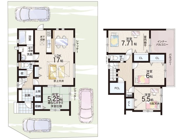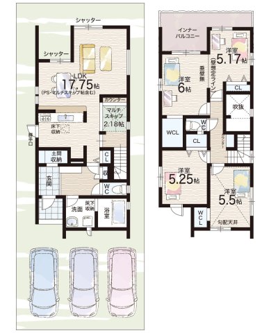 - ※完成予想図やCG合成画像は、門塀・植栽・庭・外観等、実際とは多少異なる場合があります。