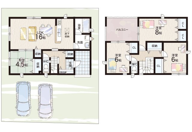 - ※完成予想図やCG合成画像は、門塀・植栽・庭・外観等、実際とは多少異なる場合があります。