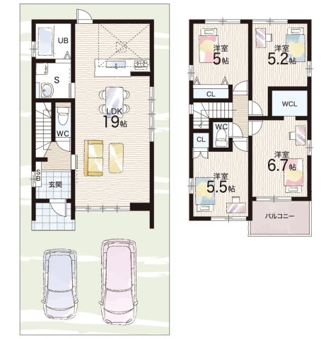 - ※完成予想図やCG合成画像は、門塀・植栽・庭・外観等、実際とは多少異なる場合があります。