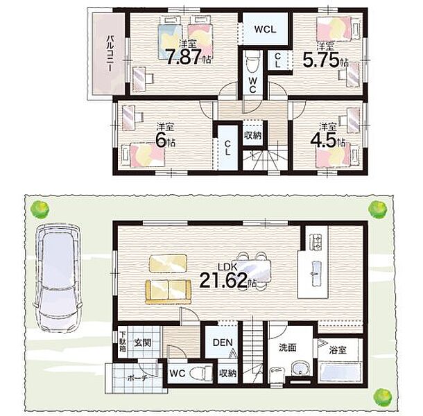 - ※完成予想図やCG合成画像は、門塀・植栽・庭・外観等、実際とは多少異なる場合があります。