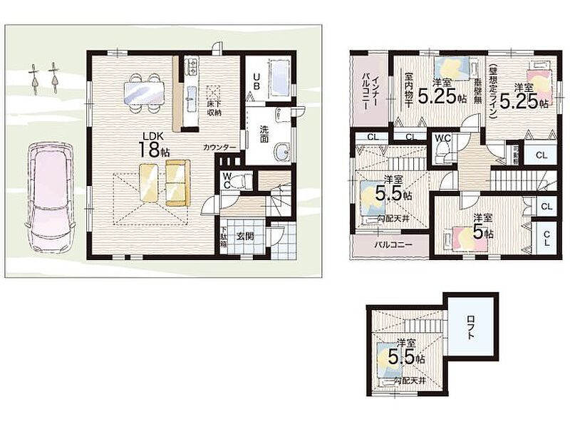 - ※完成予想図やCG合成画像は、門塀・植栽・庭・外観等、実際とは多少異なる場合があります。