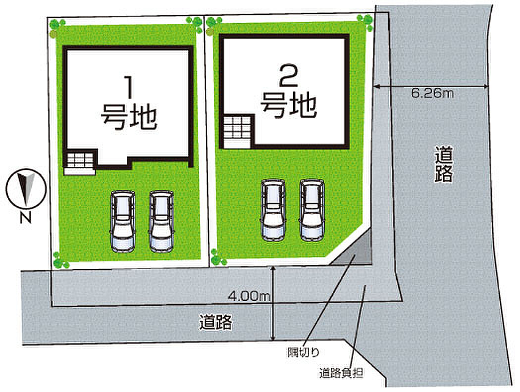 | 駐車場 | 2台 | 道路の幅員 | 北側4.0m私道 |