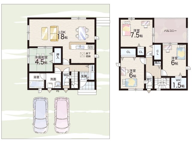 - ※完成予想図やCG合成画像は、門塀・植栽・庭・外観等、実際とは多少異なる場合があります。