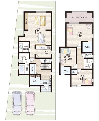 - ※完成予想図やCG合成画像は、門塀・植栽・庭・外観等、実際とは多少異なる場合があります。