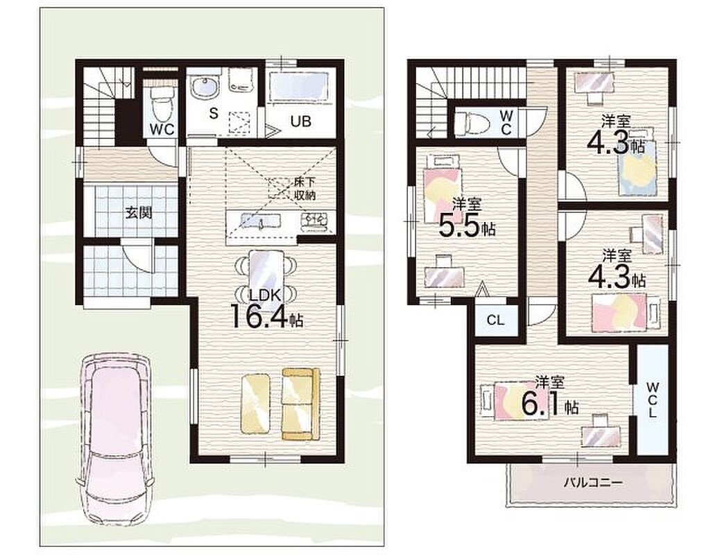 - ※完成予想図やCG合成画像は、門塀・植栽・庭・外観等、実際とは多少異なる場合があります。
