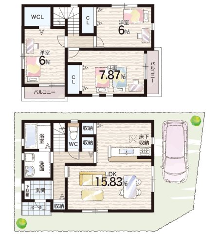 - ※完成予想図やCG合成画像は、門塀・植栽・庭・外観等、実際とは多少異なる場合があります。