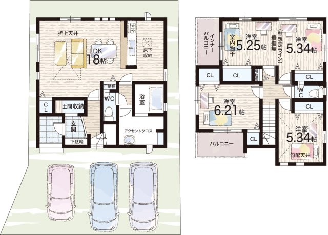 - ※完成予想図やCG合成画像は、門塀・植栽・庭・外観等、実際とは多少異なる場合があります。