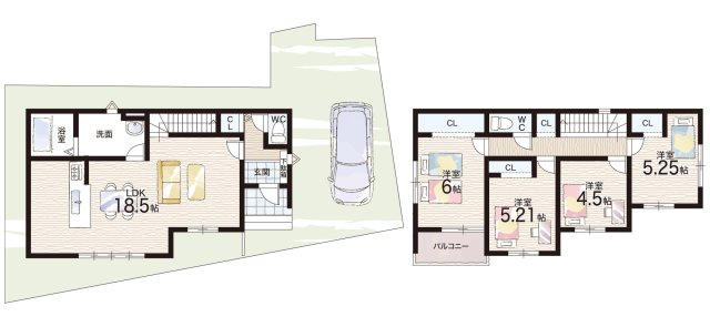 - ※完成予想図やCG合成画像は、門塀・植栽・庭・外観等、実際とは多少異なる場合があります。