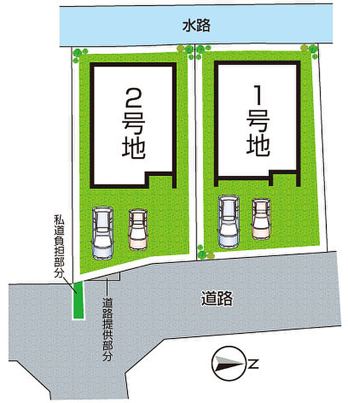 | 駐車場 | 2台 | 道路の幅員 | 東側5.0m私道 |