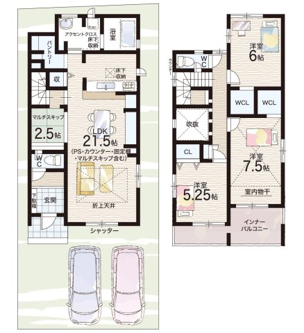 - ※完成予想図やCG合成画像は、門塀・植栽・庭・外観等、実際とは多少異なる場合があります。