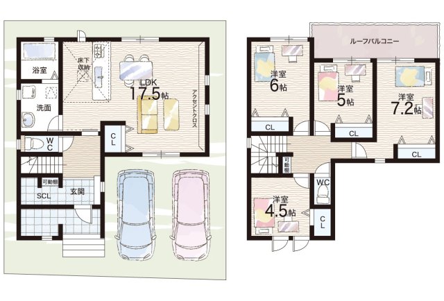 - ※完成予想図やCG合成画像は、門塀・植栽・庭・外観等、実際とは多少異なる場合があります。
