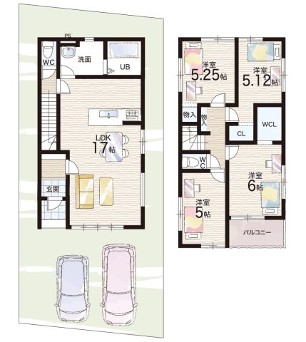 - ※完成予想図やCG合成画像は、門塀・植栽・庭・外観等、実際とは多少異なる場合があります。
