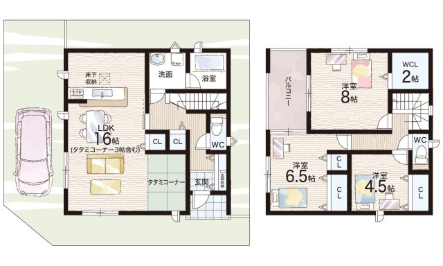 - ※完成予想図やCG合成画像は、門塀・植栽・庭・外観等、実際とは多少異なる場合があります。