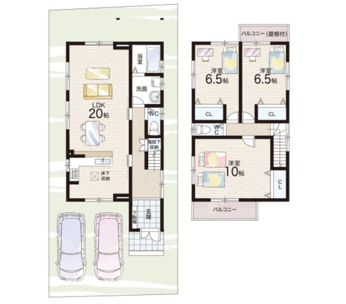 - ※完成予想図やCG合成画像は、門塀・植栽・庭・外観等、実際とは多少異なる場合があります。