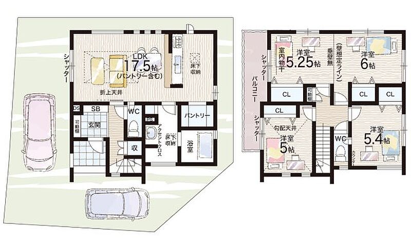- ※完成予想図やCG合成画像は、門塀・植栽・庭・外観等、実際とは多少異なる場合があります。