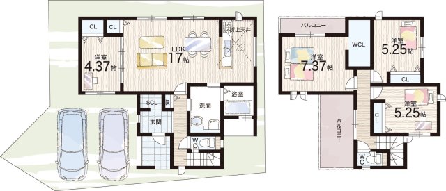 - ※完成予想図やCG合成画像は、門塀・植栽・庭・外観等、実際とは多少異なる場合があります。