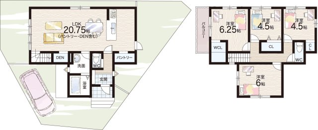 - ※完成予想図やCG合成画像は、門塀・植栽・庭・外観等、実際とは多少異なる場合があります。