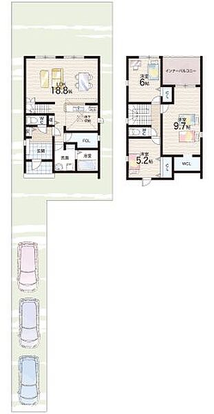 | 駐車場 | 3台 | 道路の幅員 | 北東側6.1m公道 |