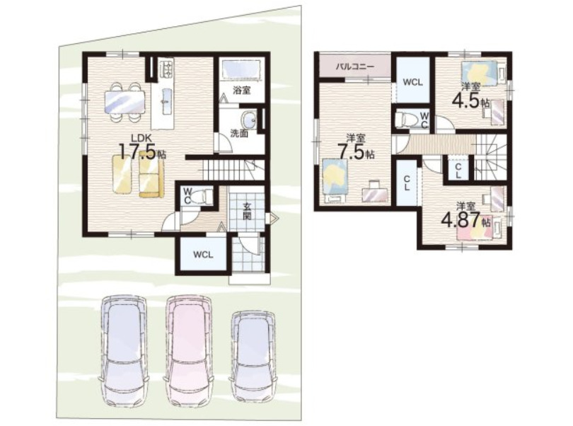 2号地 間取り 4LDK 価格 4398万円 建物面積 86.94m2 土地面積 169.43m2