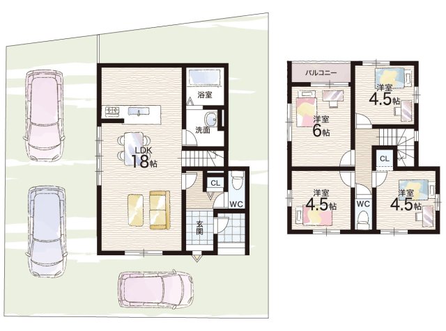 ーこだわりポイントー◆「基本構造部分」の、住宅の基礎、基礎ぐい、壁、柱、小屋組、土台、筋かい、床版、屋根版、梁(はり)、けたなど、「住宅の構造耐力上主要な部分」と「雨水の浸入を防止する部分」を10年保証しています!◆サイディング外壁を使用しております。防火性と耐久性が優れており、長期間美観を保つことができます。また、汚れが付きにくく清掃も容易なのでメンテナンスが簡単です。◆安心して暮らしていただきたいという思いから、建物だけではなく、土地の品質にも妥協しません!土地状況に応じた最適な地盤対策を講じています。