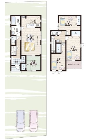 - ※完成予想図やCG合成画像は、門塀・植栽・庭・外観等、実際とは多少異なる場合があります。
