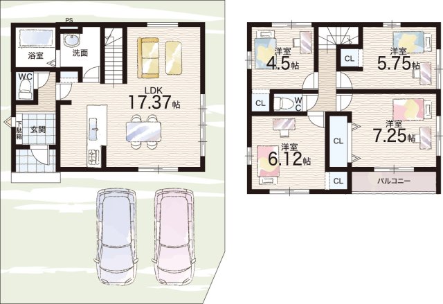 - ※完成予想図やCG合成画像は、門塀・植栽・庭・外観等、実際とは多少異なる場合があります。