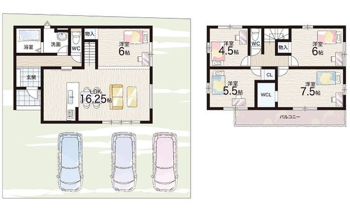 - ※完成予想図やCG合成画像は、門塀・植栽・庭・外観等、実際とは多少異なる場合があります。