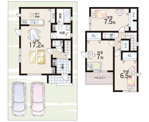 - ※完成予想図やCG合成画像は、門塀・植栽・庭・外観等、実際とは多少異なる場合があります。